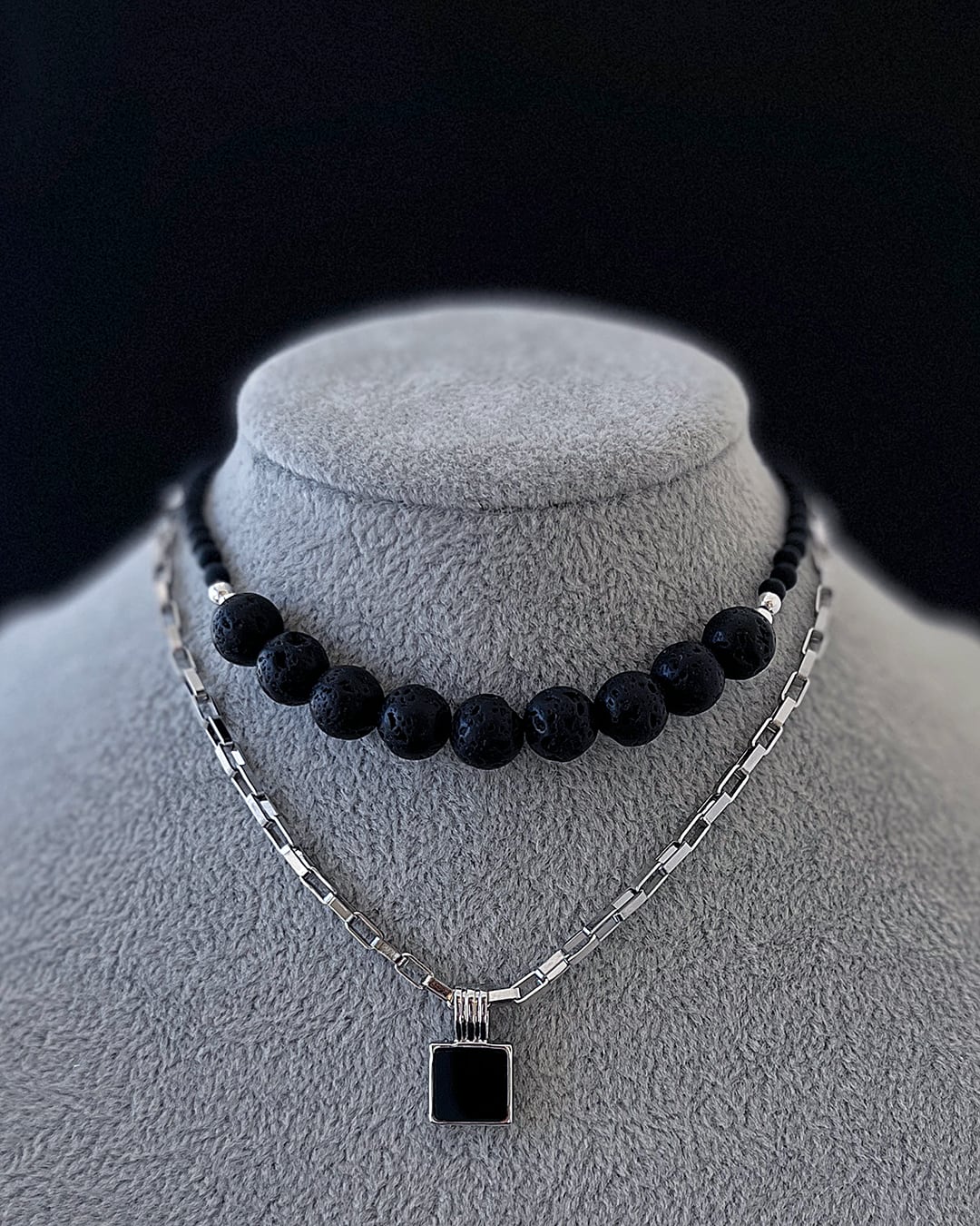 ― “無骨チェーンに映える、漆黒のスクエア。”